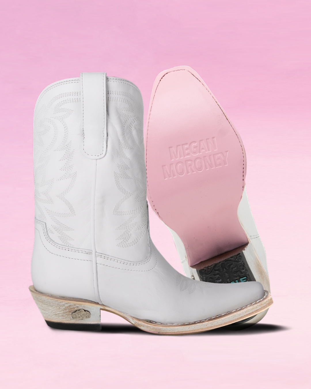 The Megan Moroney Cloud 9 Smokeshow is also available in Lil’ Lane sizing for the young emo cowgirls. Available with the cloud heel pin and light pink sole.