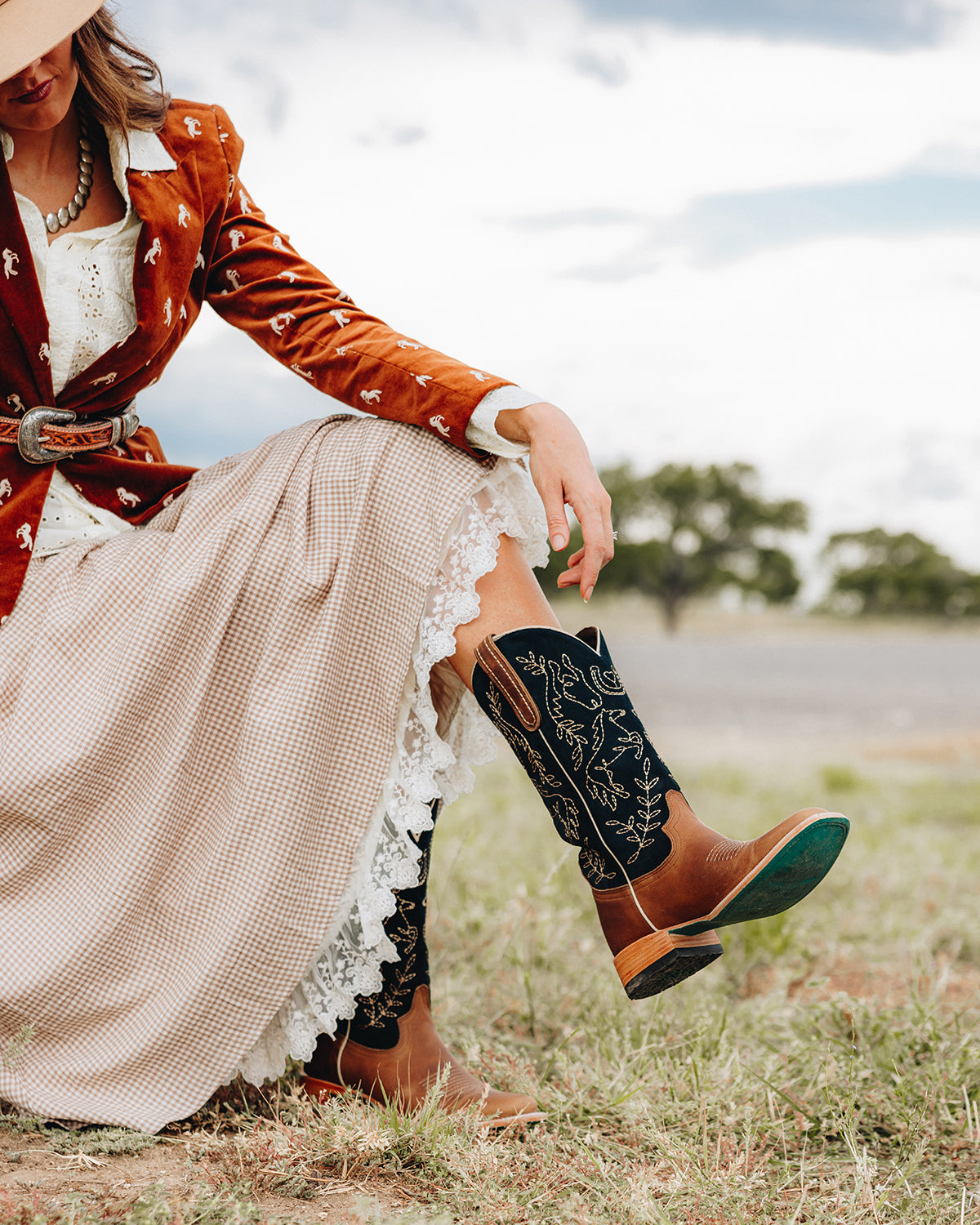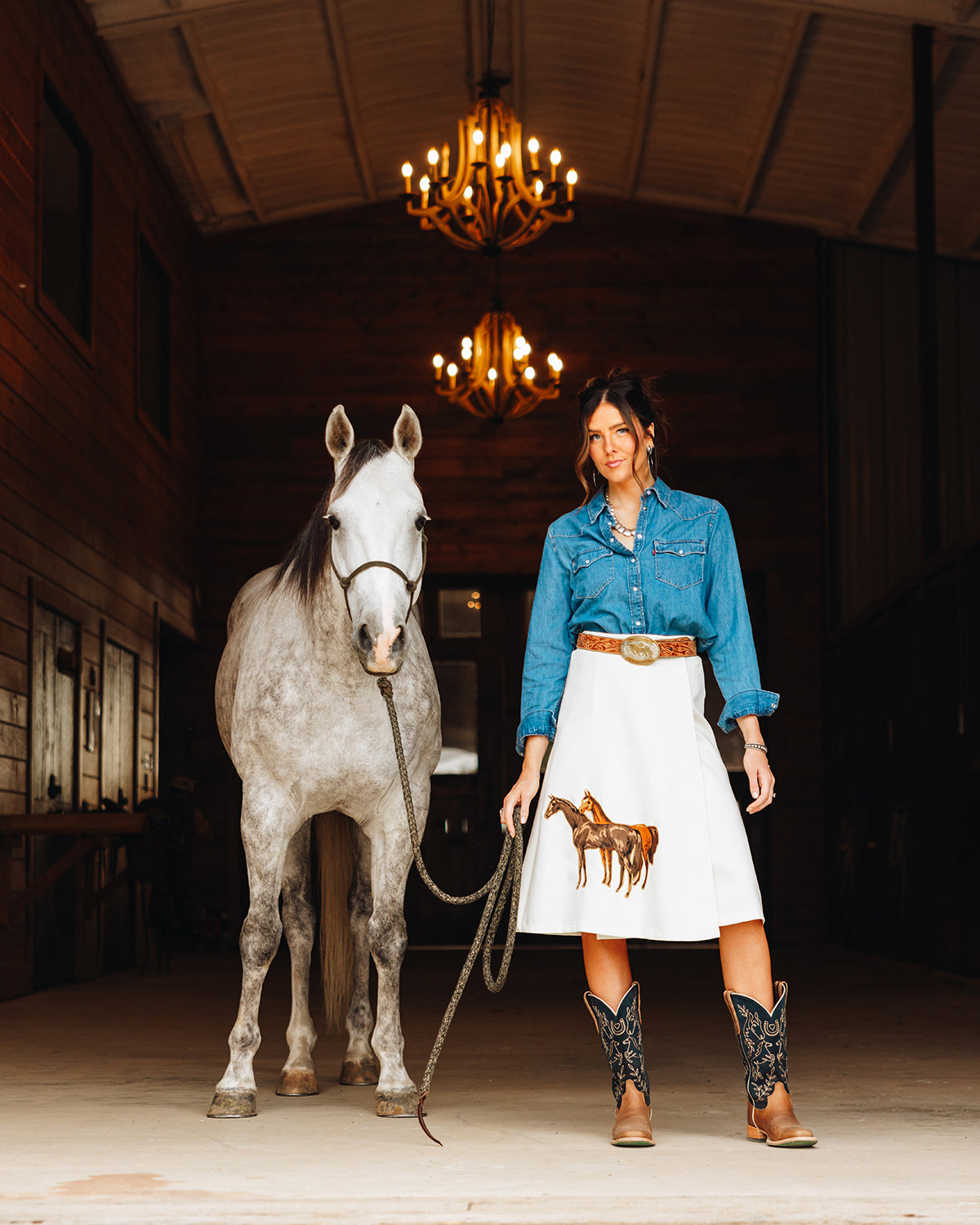 Designed as the perfect everyday boot with a square toe, neutral Desert Clay suede, and embroidered details that beg to be seen, she’s just as ready for Sunday best as she is for the saddle. “It’s the perfect ‘horse girl’ boot, inside and outside the barn,” Marijka says. Whether you’re styling her with denim or dresses, Bridlewood is the one you’ll wear again and again—any time, any place.