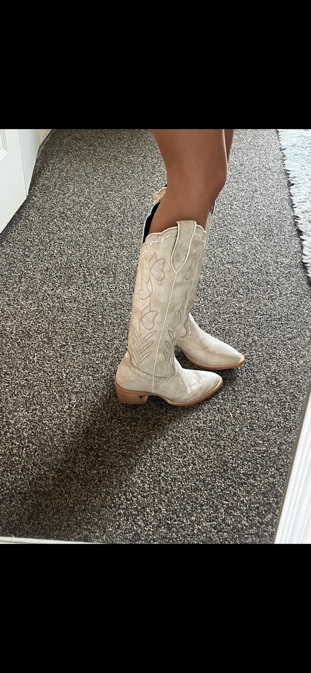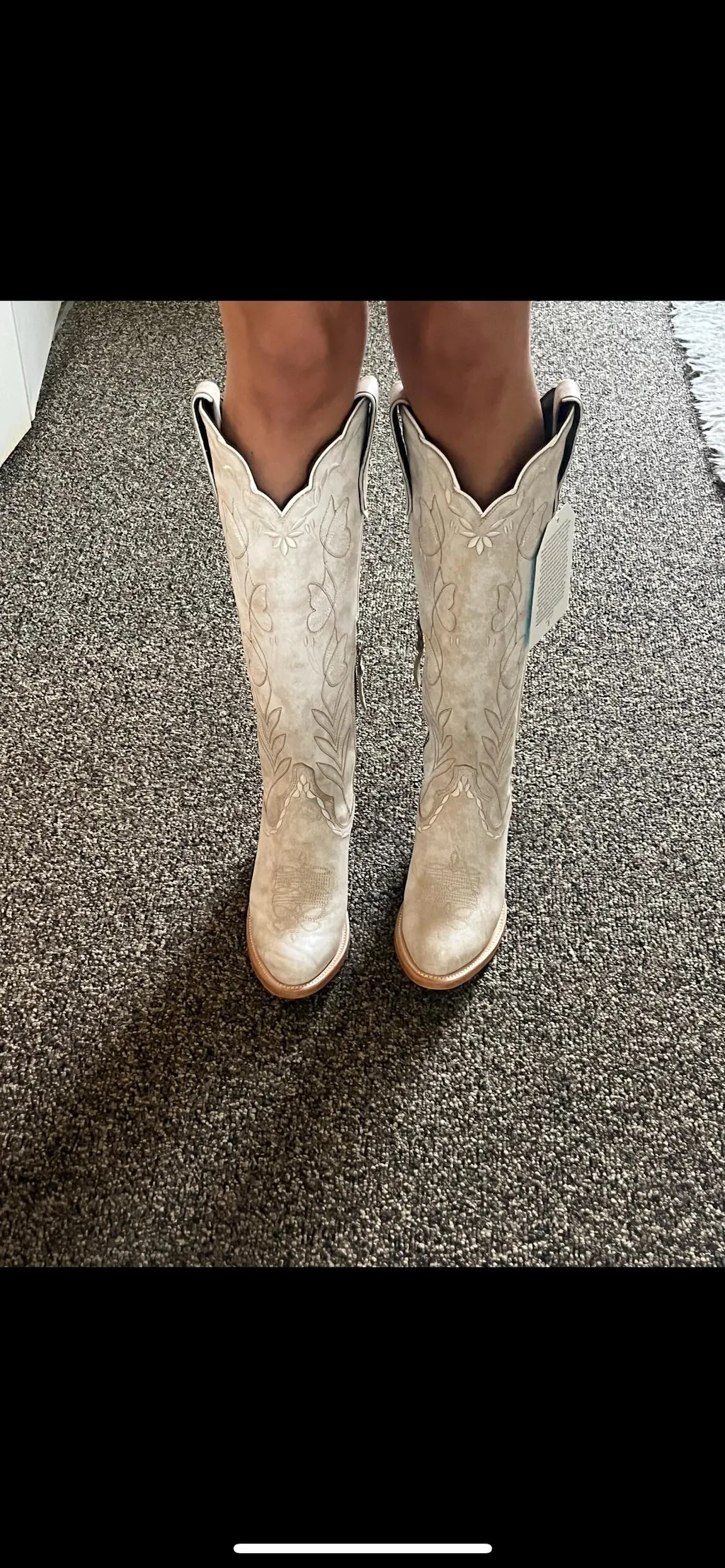 These boots are beautiful!! I’m 5’ 1 and the height of them is perfect!! I struggle finding boots that fit my calves good. Normally boots are too wide on my calves and I feel like I drowning in them but these fits so perfect. They’re also probably the most comfortable pair of boots I’ve ever tried on. Which is great bc I’ll be dancing in them for my wedding reception. The only reason I’m not giving 5 stars is because the pictures on the website are alittle misleading on the shade of them. They look much more bright white in pictures but are pretty beige/ tan. Which is fine just be aware of that! Highly recommend these boots